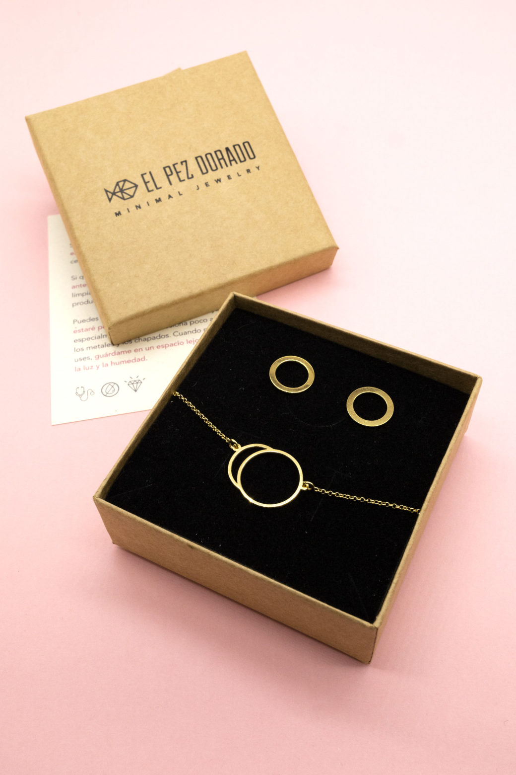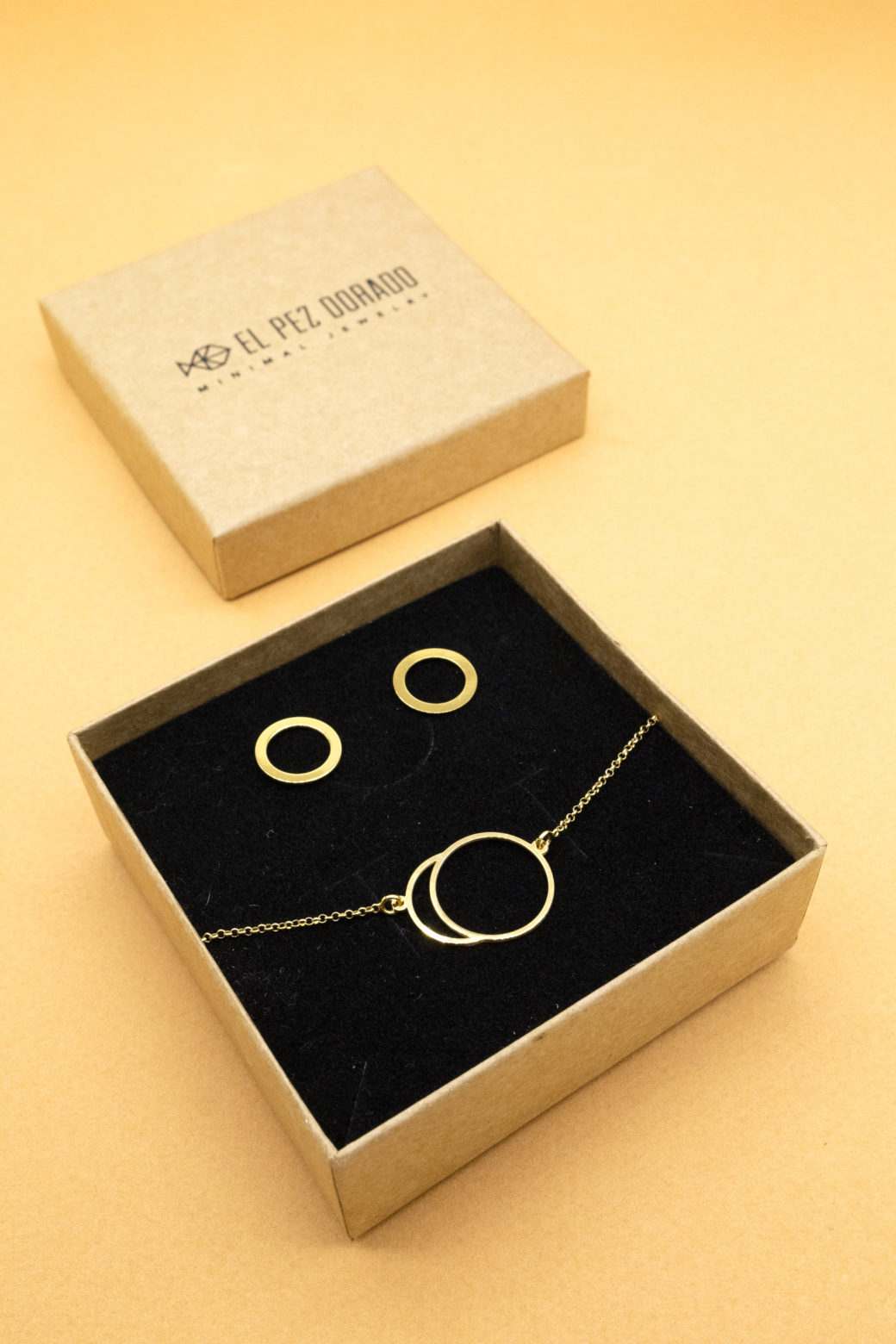 Conjunto Eclipse en Plata de ley 925 / chapado en oro 24k + pendientes modelo Círculo.