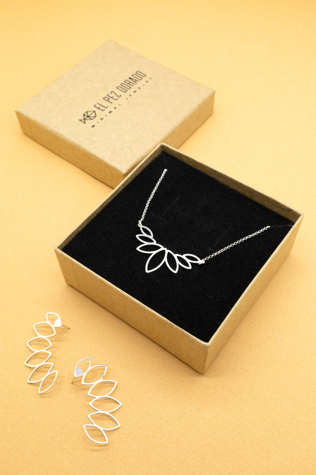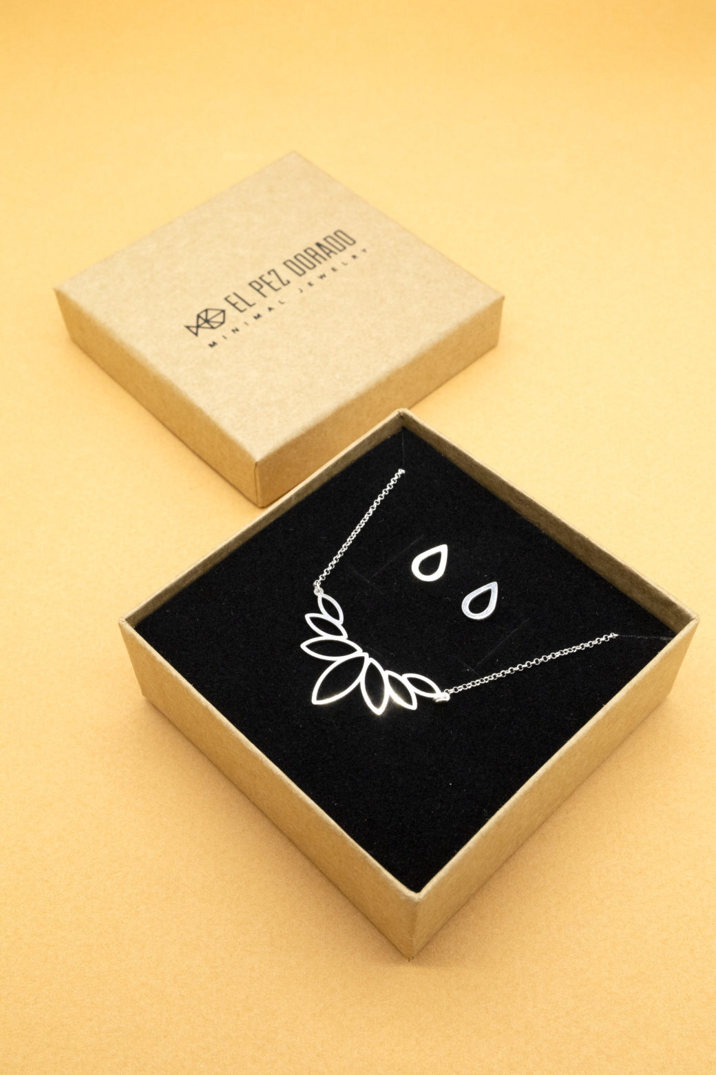 Conjunto Flor de Loto en Plata de ley 925 / chapado en oro 24k + pendientes a elegir entre modelo gota o modelo hoja