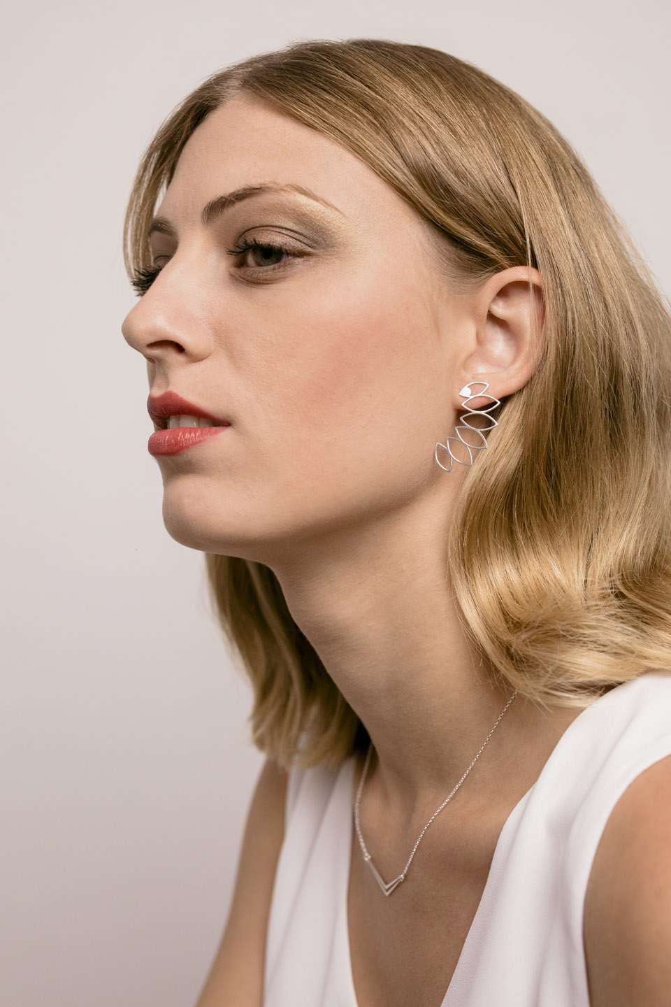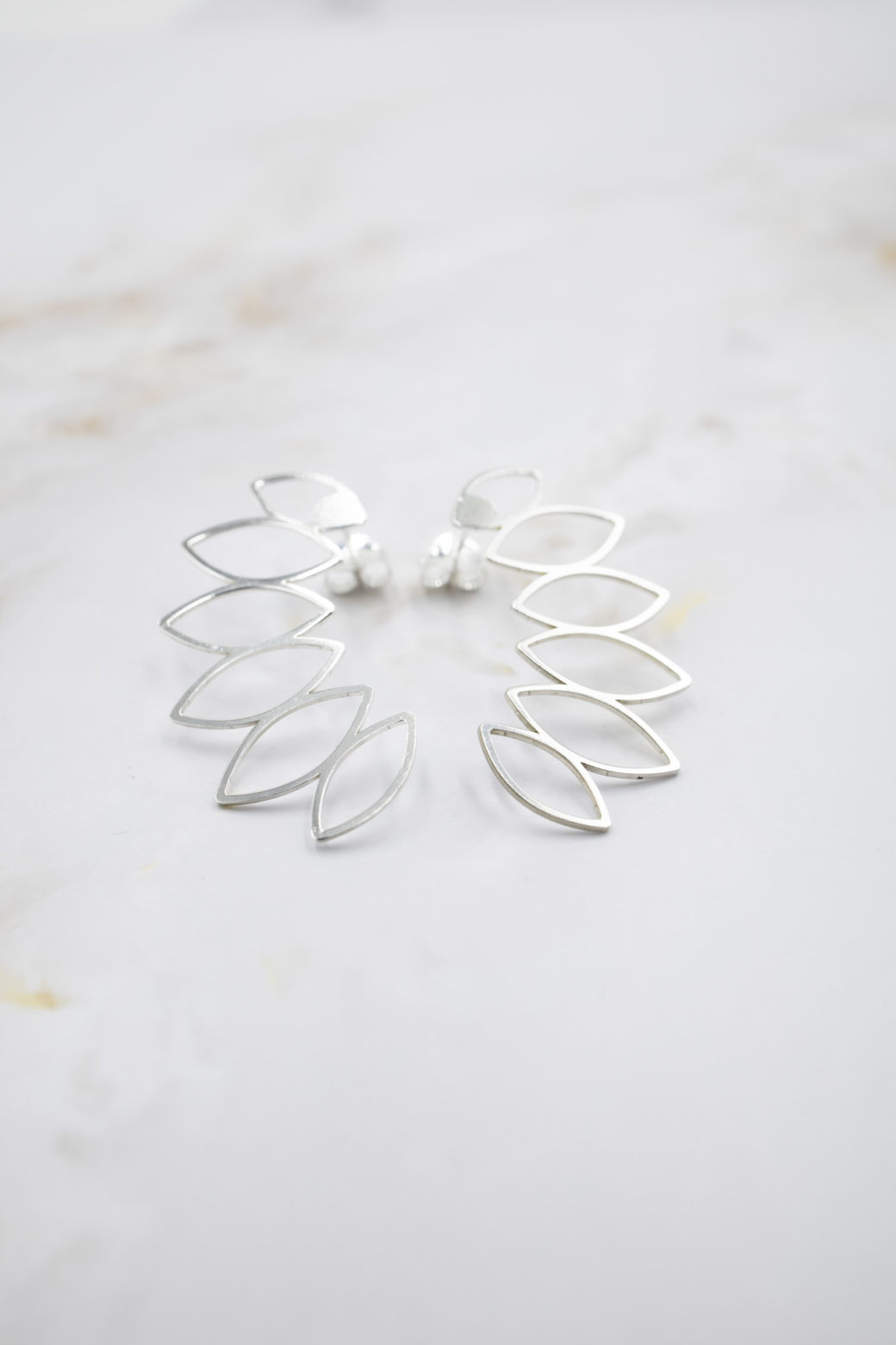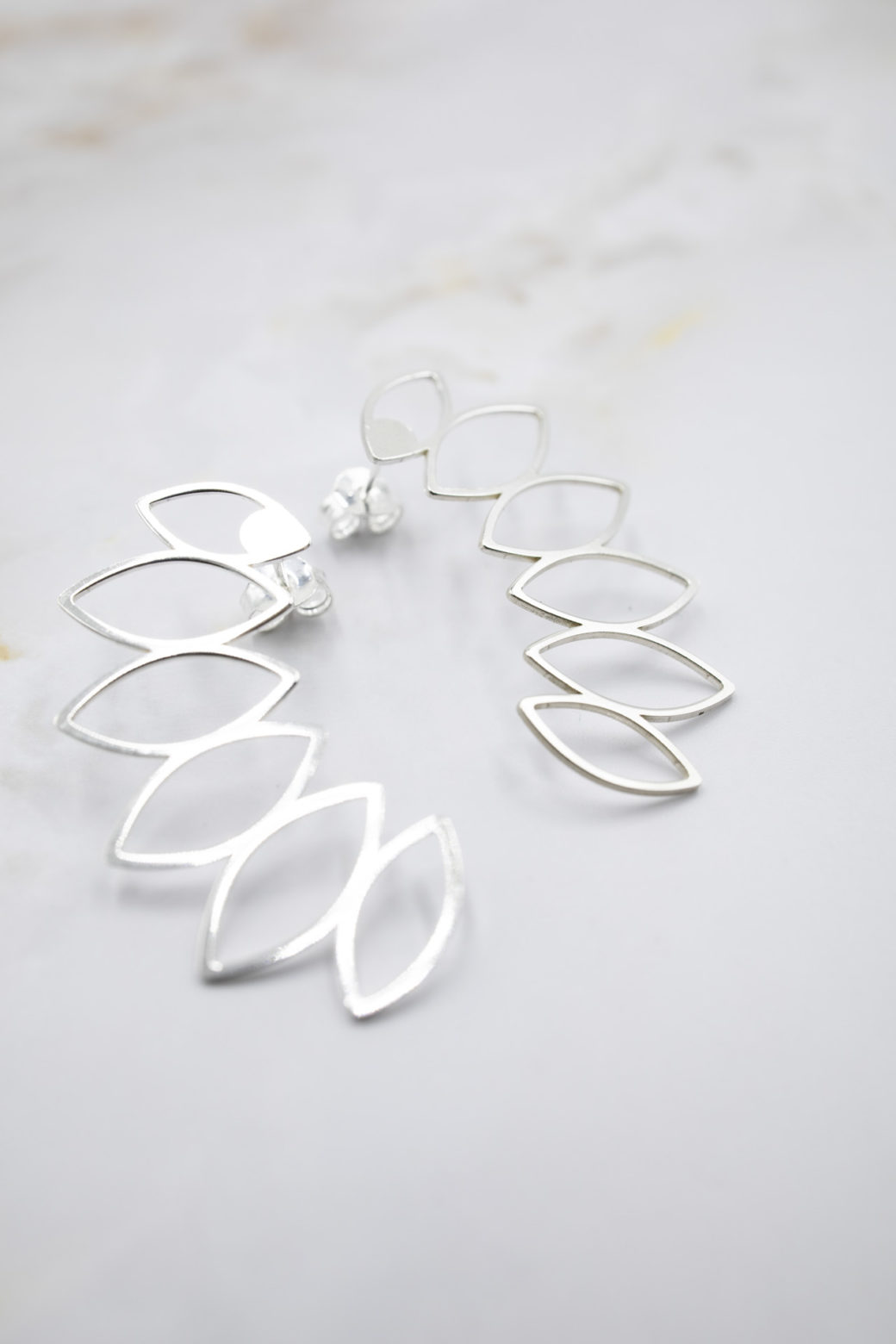 Geometría, naturaleza y elegancia materializadas en una pieza única. Medidas: 20x35x0,7mm. Material: Plata de ley 925.